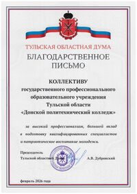 Инновационный подход к управлению образовательным процессом, успешное и многолетнее сотрудничество с социальными партнерами послужили основой для вступления Донского политехнического колледжа в федеральный проект «Профессионалитет». В 2023 году создан образовательный кластер Тульской области по отрасли «Туризм и сфера услуг».