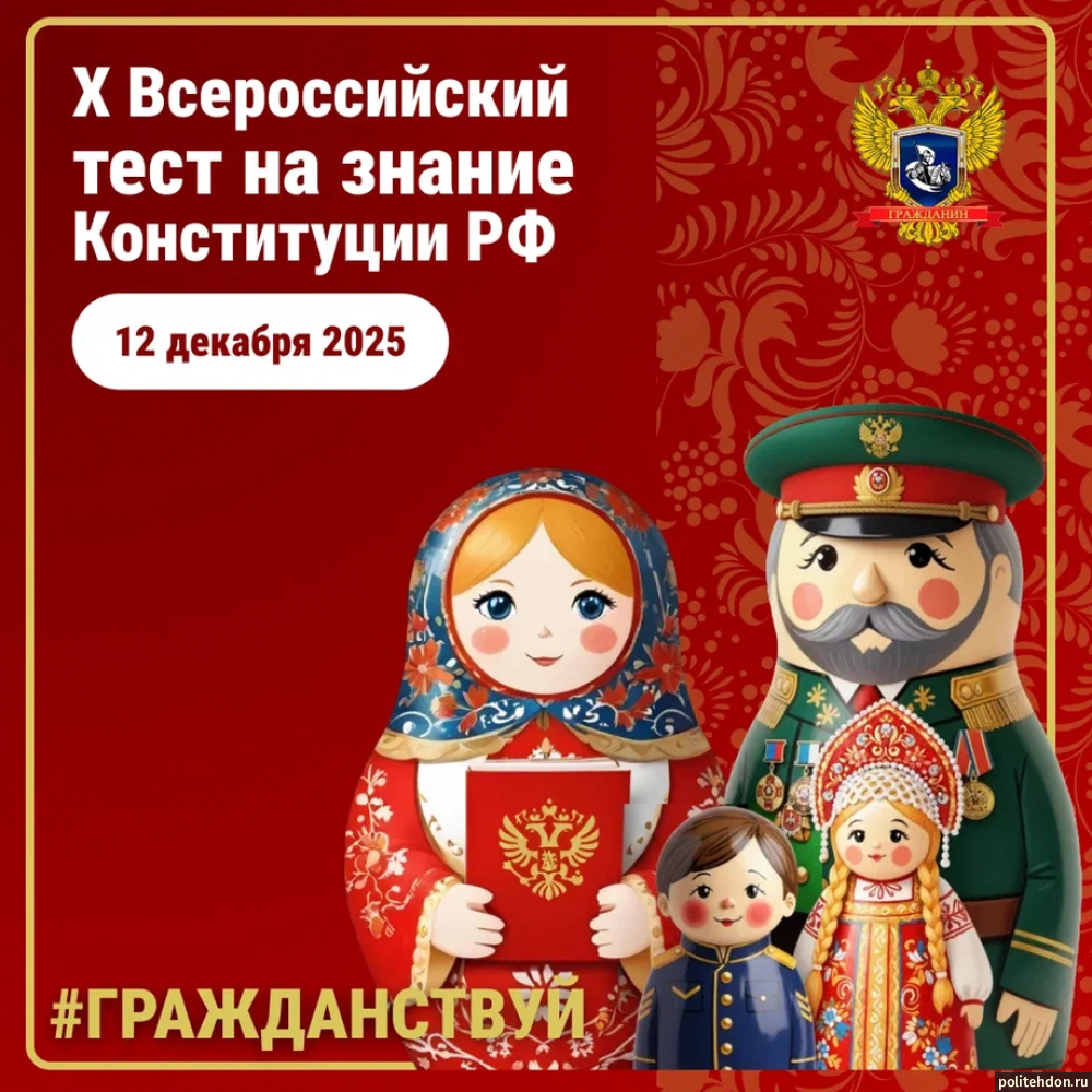 12 декабря 2025 года студенты и педагоги Донского политехнического колледжа присоединились к Юбилейной X Акции «Всероссийский тест на знание Конституции РФ», организованной общественным движением «Гражданин». В этом году мероприятие прошло в форме электронного онлайн-теста на сайте www.гражданин.дети.