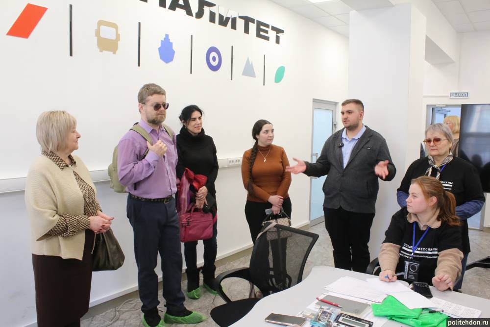 Особый профессиональный интерес вызвала мастерская ФП «Профессионалитет» по отрасли «Туризм и сфера услуг», где проходят соревнования по компетенции Туризм (юниоры) для школьников муниципальных образований гг. Донской и Новомосковск. Главный эксперт по компетенции Туризм Комиссаров Н.С. рассказал гостям об особенностях проведения соревнований для школьников и студентов, а также об организации образовательного процесса с применением технологии «Профессионалитет», ее возможностях и эффективных результатах.
