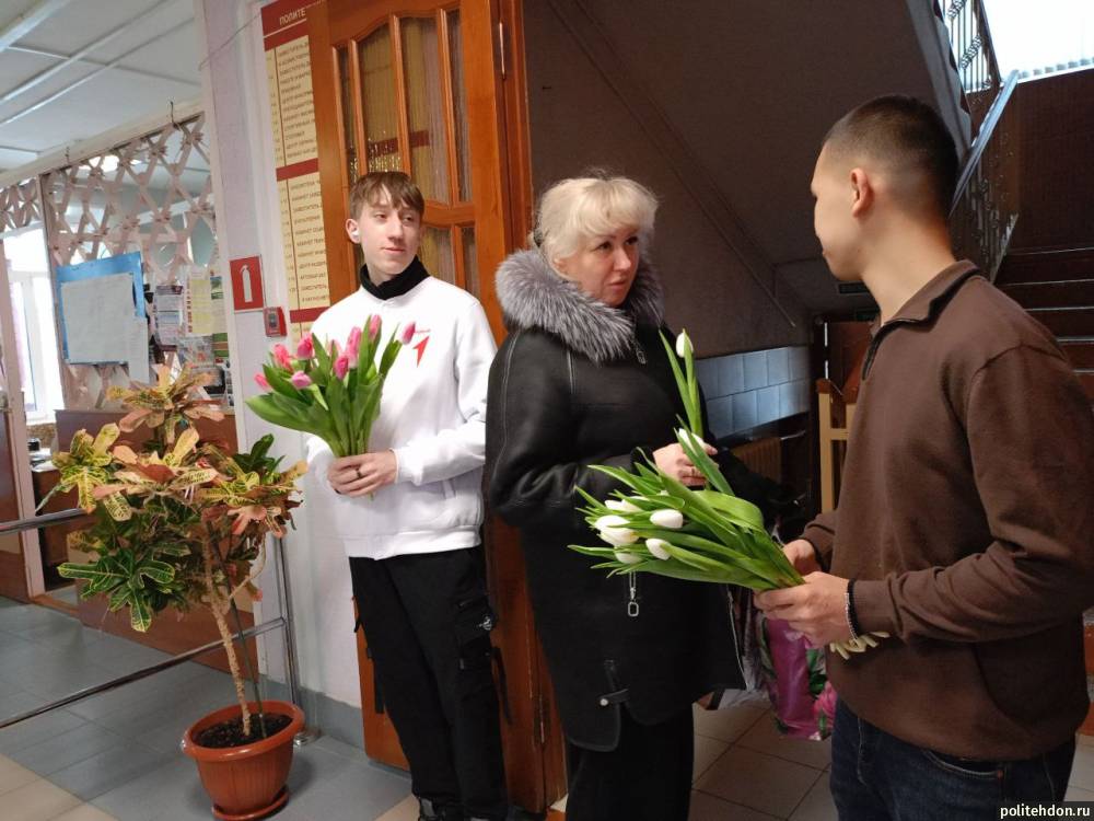 6 марта 2026 года в Донском политехническом колледже, в преддверии Международного женского дня 8 марта, добровольцы молодежного общественного волонтерского движения «Люди доброй воли» поддержали Всероссийскую акцию «Вам, любимые!». Студенты-волонтёры поздравили педагогов-ветеранов колледжа с наступающим праздником, пожелав крепкого здоровья и долголетия. Студенческий совет и участники Движения первые для педагогов колледжа провели акцию «Дарите женщинам цветы!», вручив тюльпаны – символы весны, нежности и вдохновения.