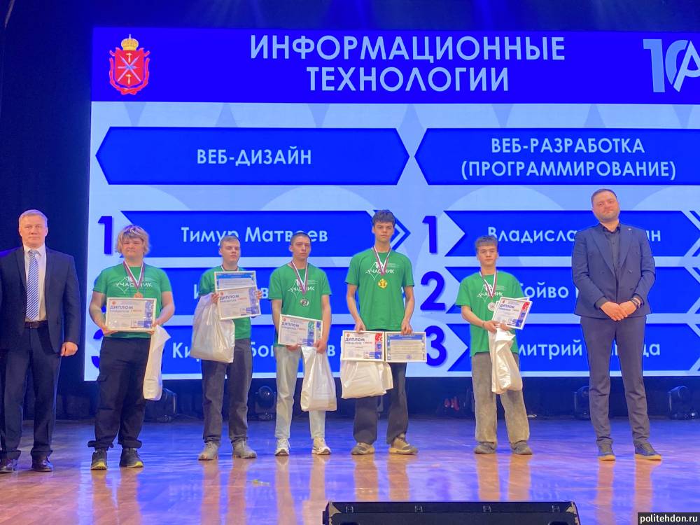 Продемонстрировав высокий уровень профессионализма и небывалое упорство, четыре 1 места заняли студенты: Пахаян В., гр. В 24-2.1 («Веб-разработка (программирование)»; Новикова С., гр. Т 23 - 3.1 («Агент по туризму»); Леонов А., гр. ИС 25-1.1 («Предпринимательство»); Матвеев Т., гр. В 23-3.2 («Веб-дизайн»).